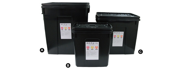 (1) 100%リサイクル樹脂を使用した環境にやさしい商品です。(2)耐貫通性・密閉性・耐衝撃性に優れ、感染性廃棄物を安全に収集・運搬できる容器です。