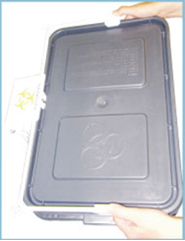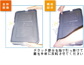 廃棄物が一杯になり、容器交換する際に蓋の裏部分に触れることなく、ホルダーから外す事ができます。